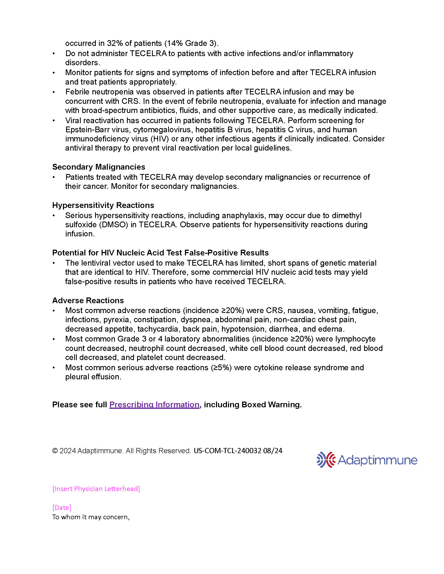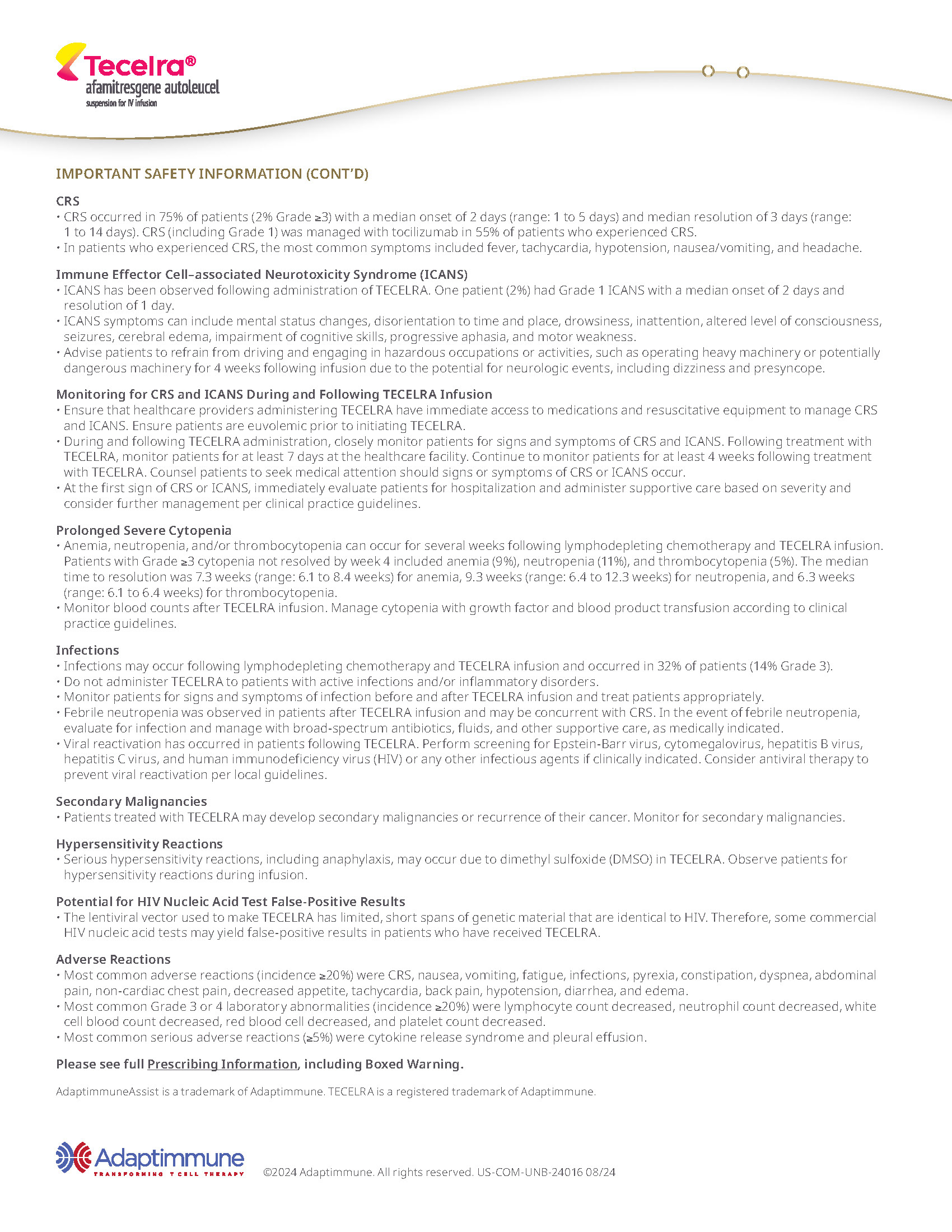 Adaptimmune - TECELRA Access Website