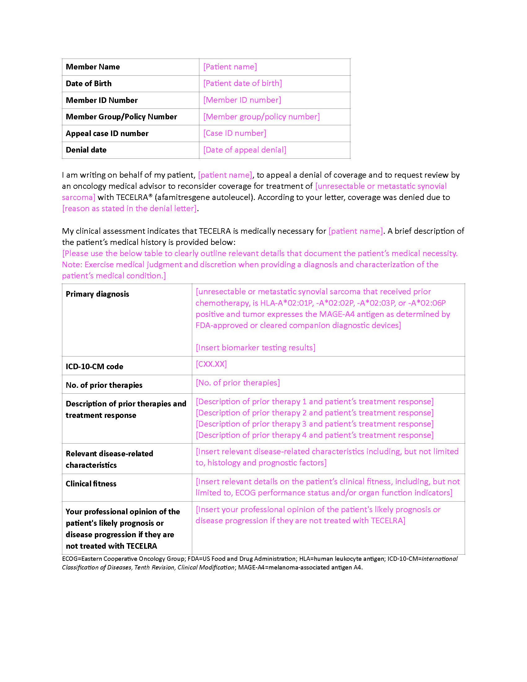 TECELRA - Letter of Appeal